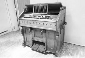 Dieses Schiedmayer-Kunstharmonium diente der Gemeinde längere Zeit als Interims-Instrument und wird nach diesem Konzert das Gemeindehaus wieder verlassen. In diesem Konzert ist es nun letztmalig Mal im Gemeindehaus zu hören.