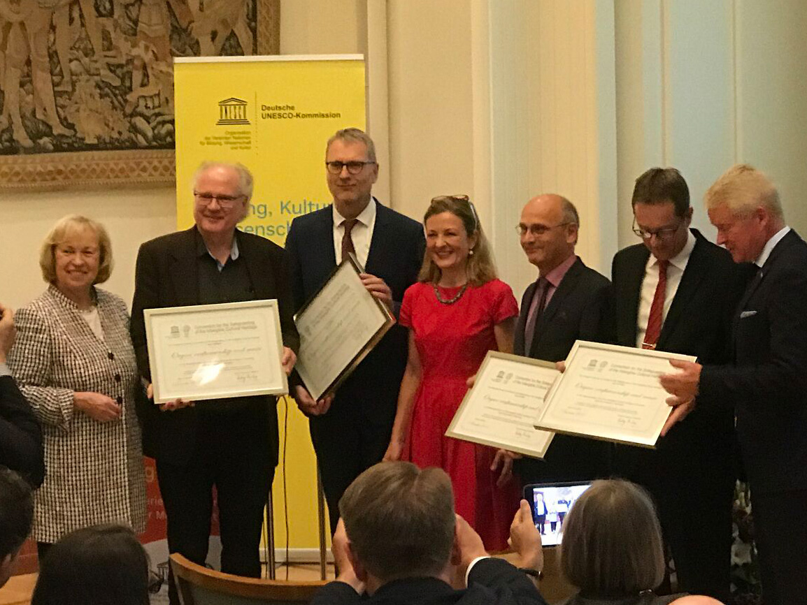 Im Rahmen eines Festaktes im Haus des Deutschen Handwerks (Berlin) wurden am 14. September die Urkunden der UNESCO zur Aufnahme von Orgelbau und Orgelmusik in die Repräsentative Liste des Immateriellen Kulturerbes der Menschheit übergeben. Frau Irmgard Maria Fellner, Beauftragte für internationale Kulturpolitik im Auswärtigen Amt, überreichte in Anwesenheit der Präsidentin der Deutschen UNESCO-Kommission, Frau Prof. Dr. Maria Böhmer, Urkunden an die antragstellenden Verbände.