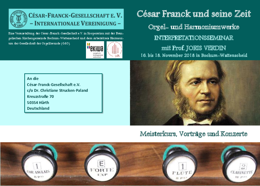 - 17.30–18.30 Uhr: Vortrag „César Franck und das Harmonium“ (Dr. Chr. Strucken-Paland)